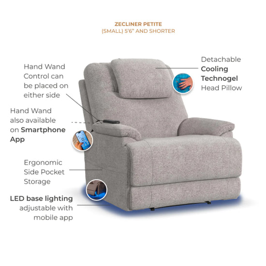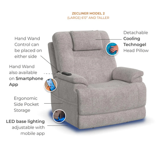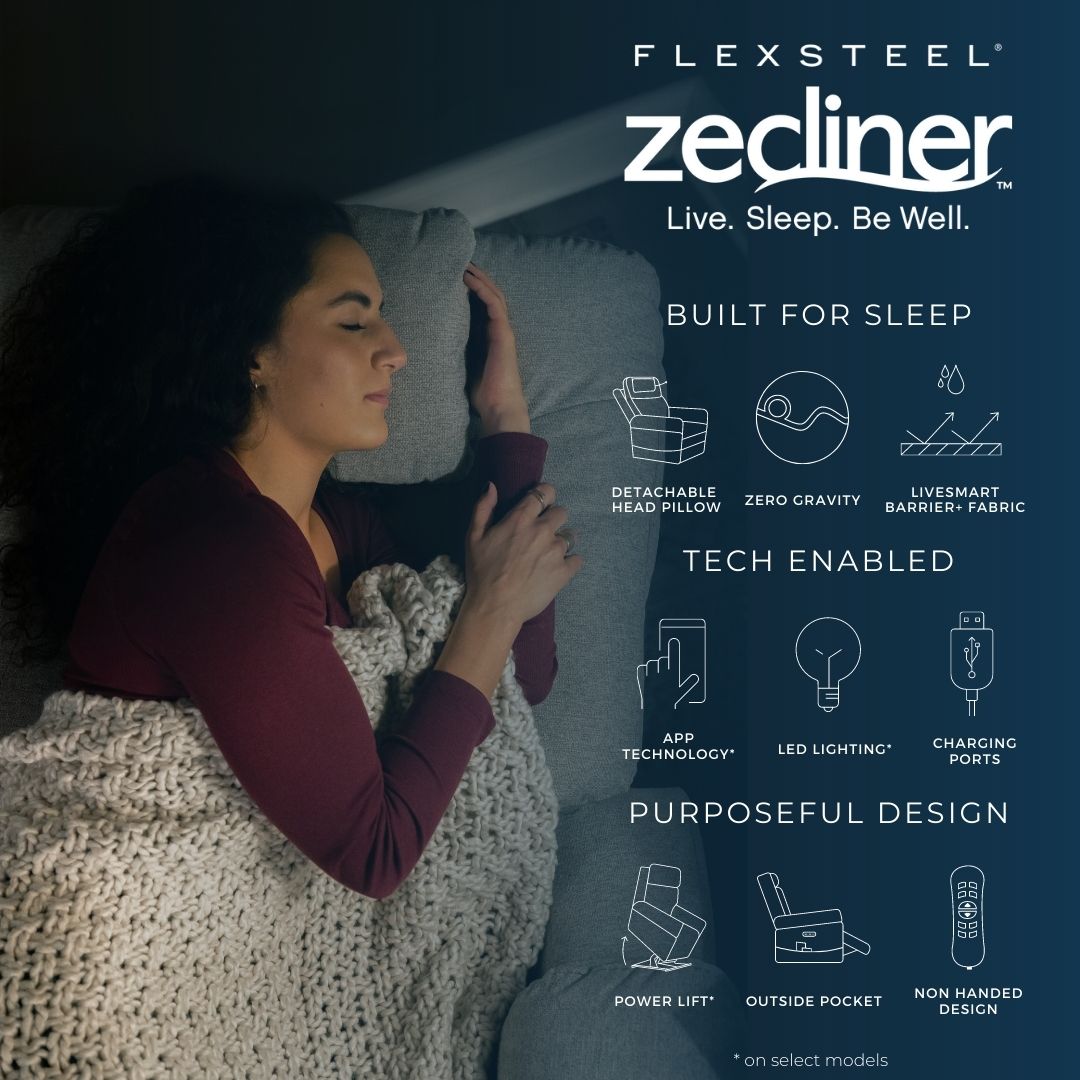 A healthy life starts with a healthy night's sleep. Zecliner was designed and built with restful sleep in mind, making it the ideal choice for a bed-alternative. Its sleek and cozy design makes it the perfect family chair by day and the best place for peaceful sleep by night. Zero Gravity reclining puts you in a state of weightlessness, while the reliable performance fabric upholstery holds up to life, day in and day out. Our Blue Steel Spring supports you to be the healthiest version of yourself while the latest perks in recliners give you added bliss. Achieve full relaxation and rest peacefully with the Zecliner.