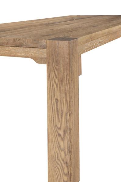 The Gathering table is crafted from solid American Oak. Design features include exceptionally proportioned 5.25 inch table top and apron. The 5 inch solid oak legs protrude through the table top creating a unique and interesting dining surface.