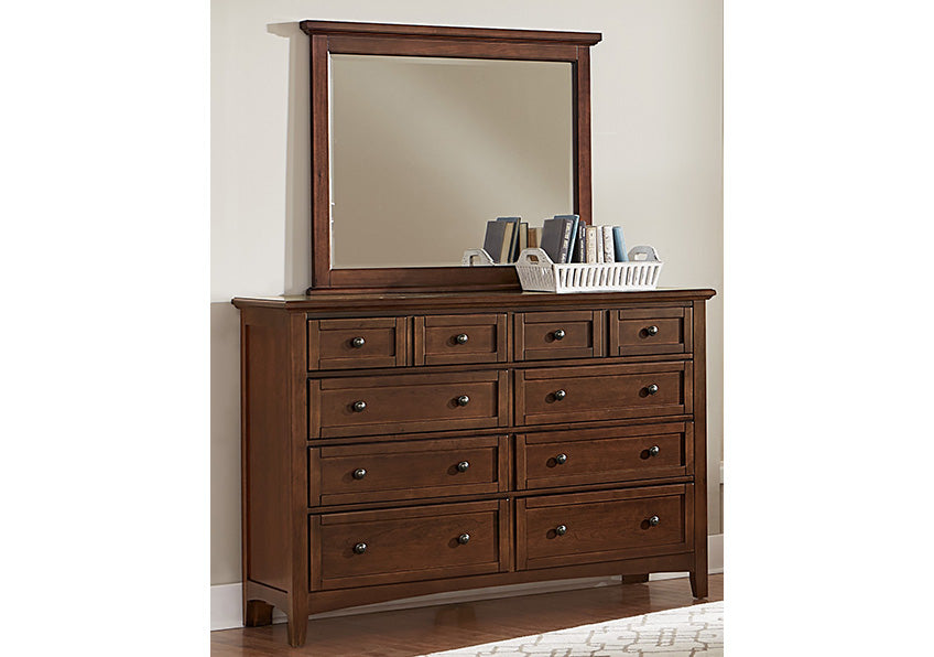 Made in the USA, this triple dresser with eight drawers offers casual style to any bedroom in your home. Its design elements with framed drawer fronts, tapered feet, and simple molding create a look that fits within contemporary to transitional space. The base rail is gently curved to add dimension to complete this dresser.