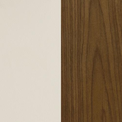 • Enjoy a lush palette with ecru leatherette upholstery and walnut and chrome trim