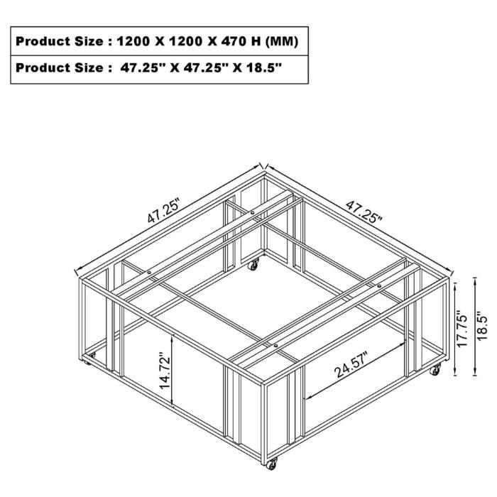 This square coffee table combines functionality with modern style, featuring a tempered glass top and a sturdy geometric base made from heavy-gauge metal. The open-frame design creates a sleek, contemporary look, while smooth-rolling casters add mobility for easy repositioning. Its scratch-resistant materials ensure durability and low maintenance, making it a versatile centerpiece for any living room or shared space.