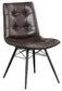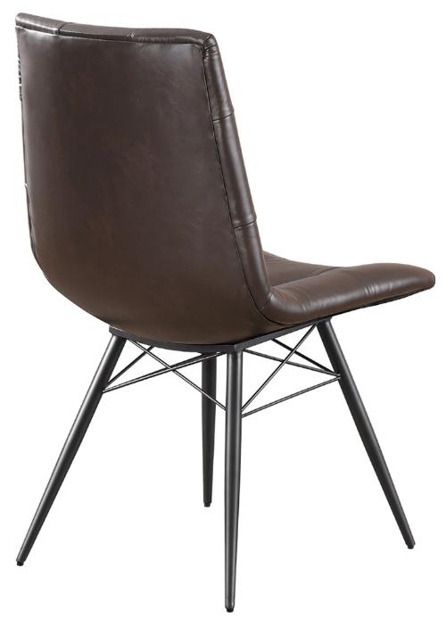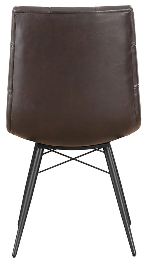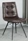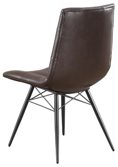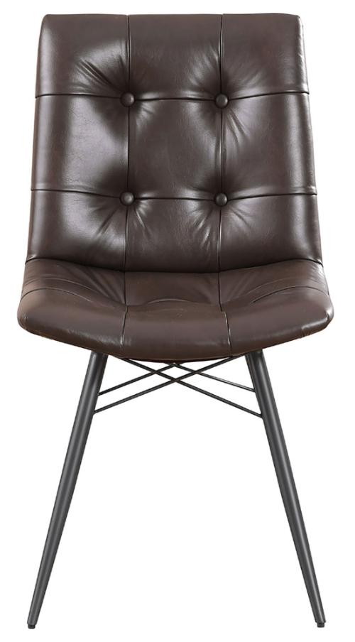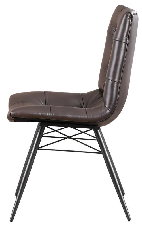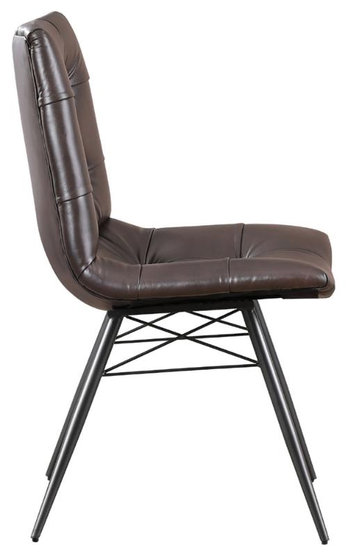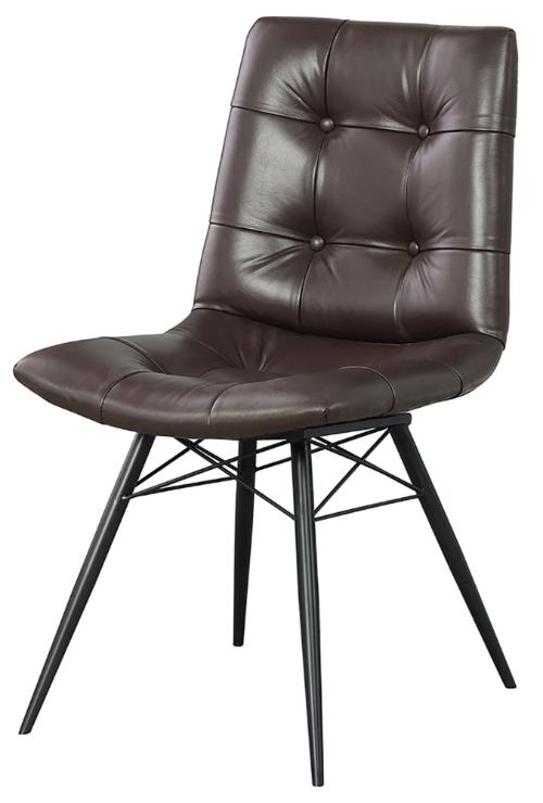 Looking to add some style to your dining room? Look no further than this charming, leatherette side chair. The beautiful brown upholstery adds warmth to a room. Decorative button tufting adds a trendy yet tasteful touch. Complete with sleek, angled legs in a gunmetal finish, this chair has a mid-century modern feel that enlivens any space.
