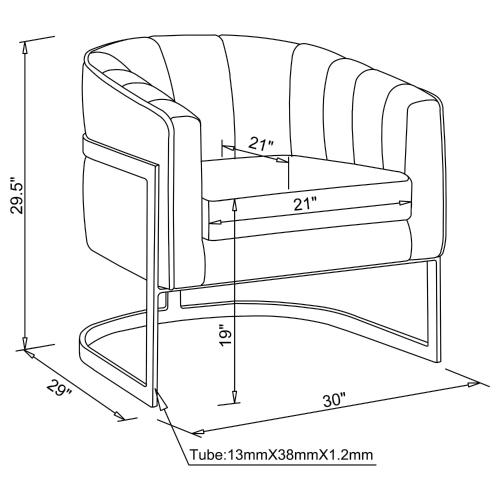 Exquisitely modern and stylish, this bucket chair provides comfort and aesthetic allure. It's upholstered with soft velvet that will have you sinking into the padded cushioning. Vertical tufting adorns the backrest for an eye-catching appearance. The bold gold frame will never go unnoticed, perfectly supporting this piece as you relax. Use this dark grey accent chair in your living room, bedroom, or home office.
