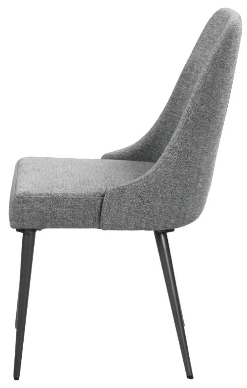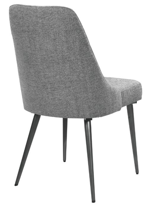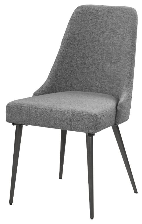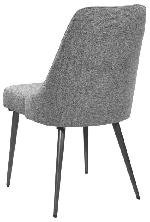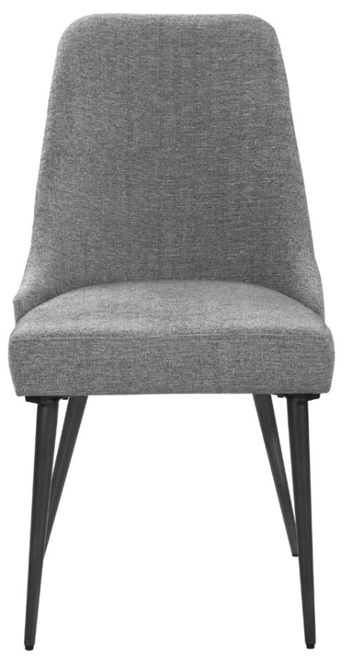 Channel mid-century charm with this armless side chair, wrapped in soft textured grey fabric. Its sleek wingback-inspired profile and gently tapered gunmetal legs bring a fresh, modern edge to dining spaces. Padded for comfort and built with durable materials, this chair offers a timeless silhouette that pairs effortlessly with a variety of table styles and finishes.