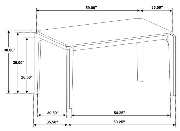 • Table features a chamfered edge with gently tapered, angular legs that catch the eye