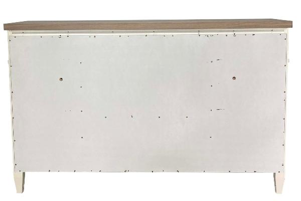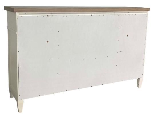 This nine-drawer dresser is a piece of furniture that exudes timeless charm and elegance. The hand-painted Cotton finish with contrasting Weathered Natural top creates a visually stunning design that will complement any bedroom décor. The dresser is crafted from the finest materials - poplar solids with birch veneers and oak veneer tops - ensuring long-lasting beauty and durability. The tapered legs create an eye-catching silhouette and add to the overall aesthetic of the dresser. The solid-metal custom hardware in authentic Burnished Bronze adds a touch of luxury and class to the dresser.