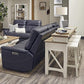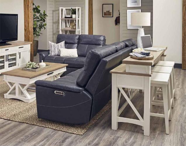 Destined to be the new hub of your home, the Everywhere Console with 2 Stools, from the Americana Modern collection combines style and functionality. Place it behind a sofa or in a nook to create a flexible casual dining area. Its crisp white painted Cotton finish is accented with a contrasting wood-tone top in Weathered Natural. A multifunctional Power Center with dual AC outlet and dual USB port makes it an ideal location for working from home or surfing the web. Two coordinating backless stools in Cotton complete its casually elegant look.