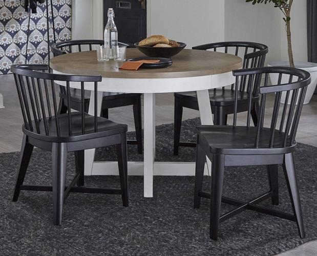 AMERICANA MODERN DINING DINING TABLE 48 IN. ROUND TO 66 IN. (18 IN. LEAF)