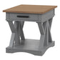 The Americana Modern End Table is where fun meets function. Its classic design character is highlighted in a versatile Dove grey finish and features a contrasting wood-grain top in Weathered Natural. The open area below is perfect for storage while its center drawer and crossbeam silhouette create a stunning visual.