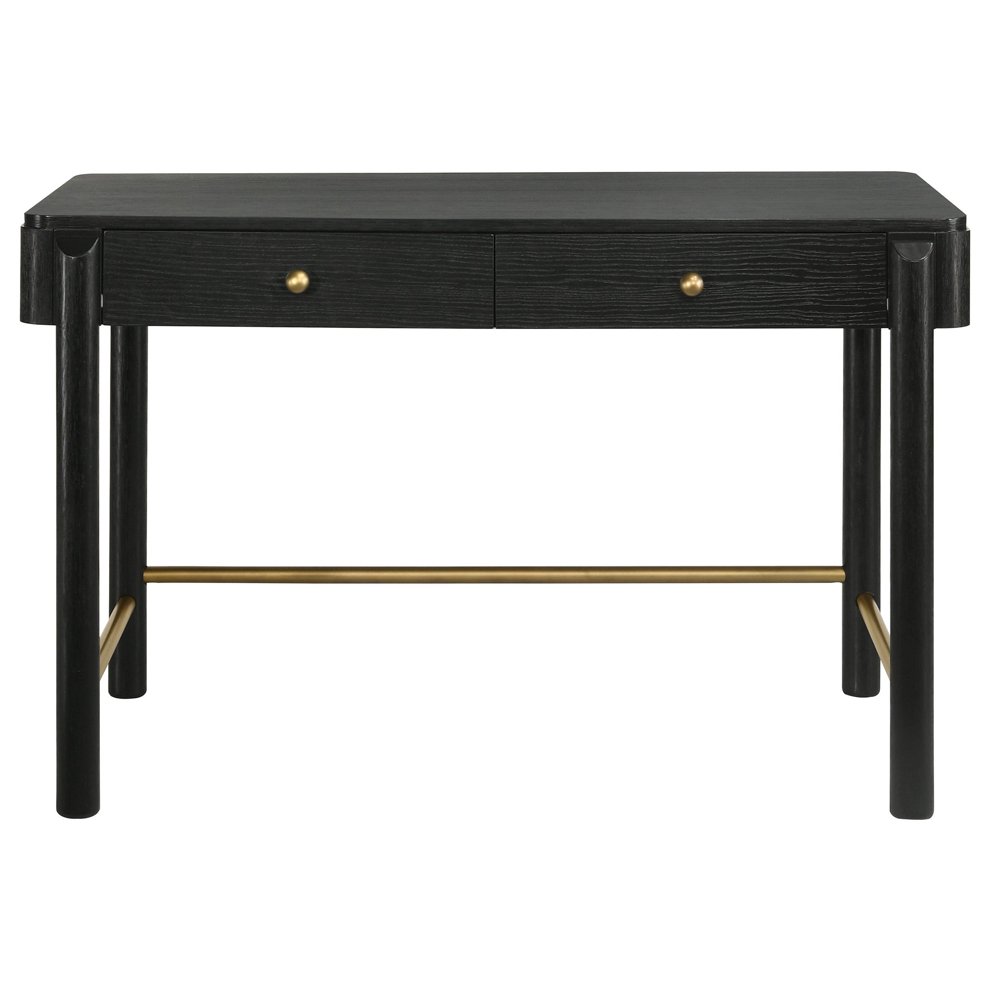 Transform your daily routine with the elegant 2-piece Arini makeup vanity set, a blend of modern coastal charm and subtle glamour. The vanity table, finished in a rich black that highlights the wood grain, offers two spacious drawers for all your beauty essentials, accented by gold-finished ball knobs. The accompanying round wall-hanging mirror, also in black, features a built-in jewelry tray, perfect for keeping your fragrances and cosmetics neatly displayed. This set not only elevates your grooming space but also adds a touch of sophistication to any room. Enjoy a stylish, organized, and luxurious experience every day.