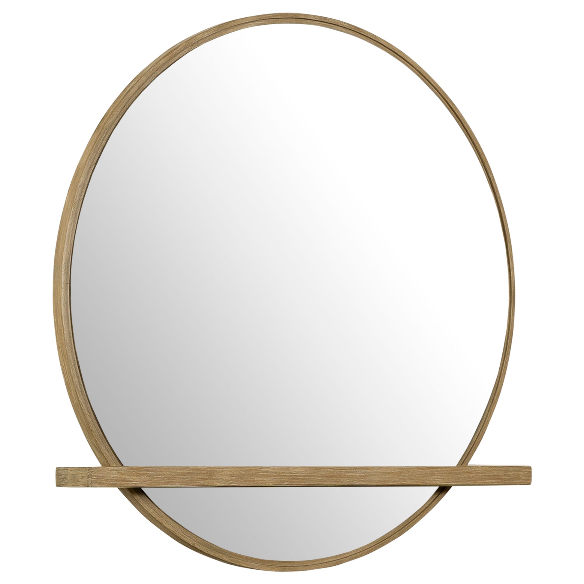 This round dresser mirror blends style and versatility with its modern organic design. Framed in a wire-brushed sand wash finish, it brings warmth and natural texture to the bedroom. A built-in felt-lined tray offers a secure spot for jewelry and accessories, keeping surfaces neat and organized. Designed for flexibility, this mirror can be mounted directly to the matching dresser or displayed independently on the wall, offering both functional elegance and contemporary appeal for any bedroom retreat.