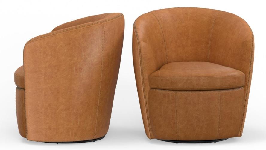 Our timelessly chic Barolo leather swivel chairs feature a classic yet versatile silhouette that fits effortlessly into almost any room. This low-profile barrel seat is wrapped in glove soft leather, offering 360-degree swivel action to allow for quick pivots in any direction. Bold decorative stitching elevates this chair to the next level, securing its place as a tried and true staple piece in your living space. Available in seven gorgeous classic leather colors.