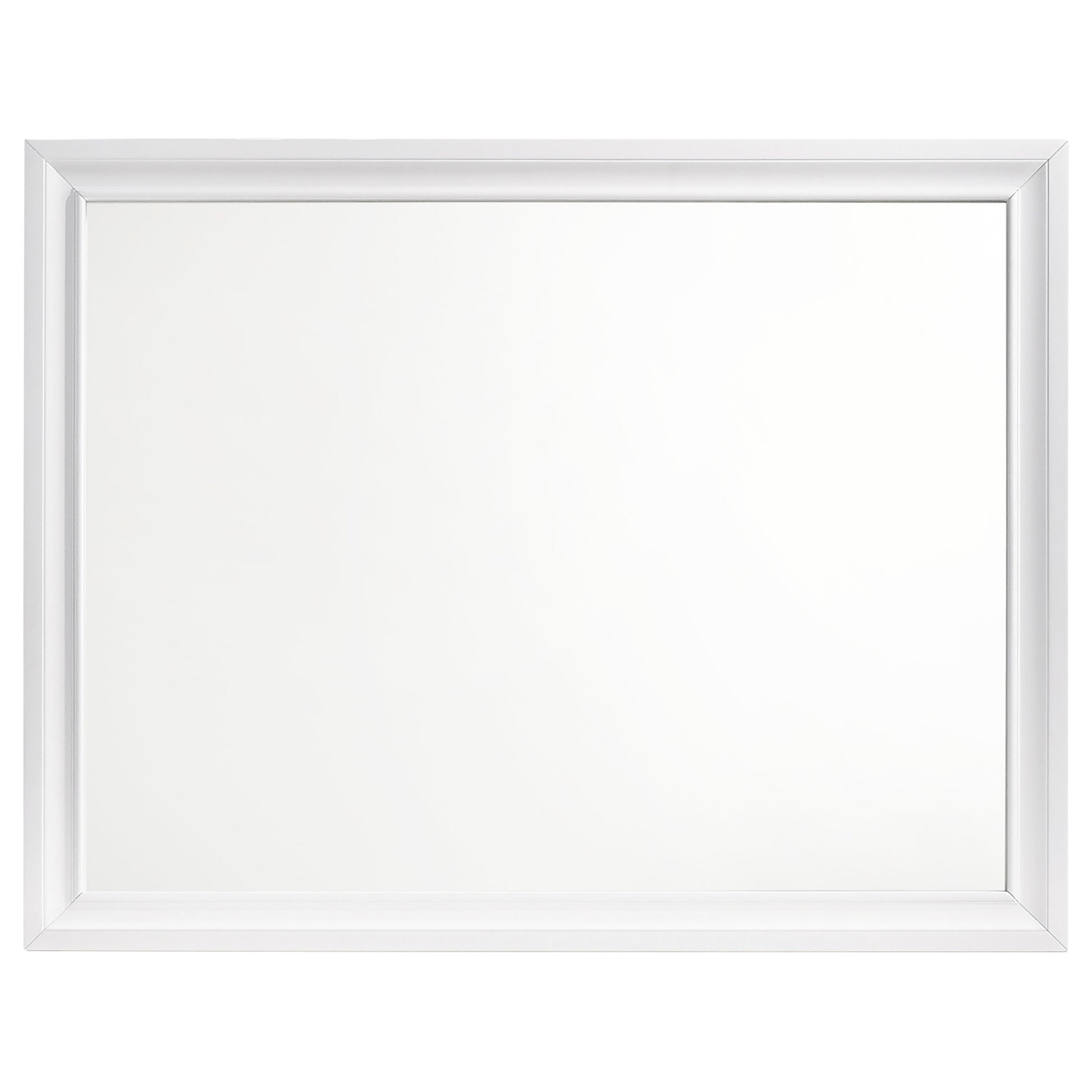 Transform your bedroom with the elegant design of this white set. The panel bed showcases metallic leatherette channel tufting framed by crisp molding and finished with turned feet for timeless charm. Coordinated storage brings added sparkle with glittery acrylic panels and faceted crystal hardware, blending modern radiance with classic details. Sculpted bun feet complete the look, while solid rubberwood, engineered wood, and okume veneer provide durability for lasting beauty and function.