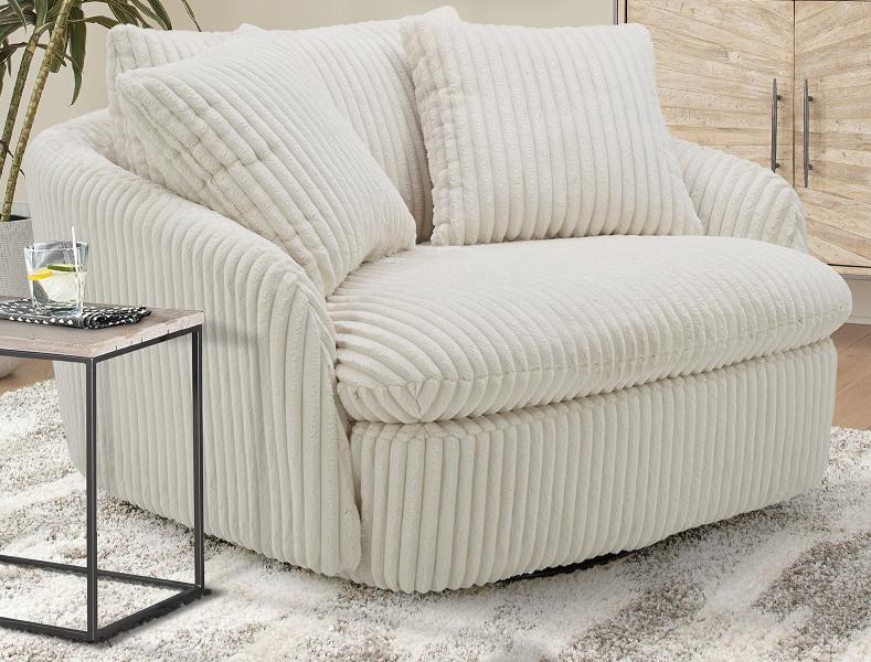 BOOMER - MEGA IVORY LARGE SWIVEL CHAIR W/ 2 TOSS PLWS