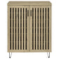 Transform your foyer or hallway with this versatile shoe cabinet, designed to keep your footwear organized and out of sight while complementing a variety of interior styles. Behind its distinctive vertical-slatted doors, multiple adjustable shelves provide ample room for everything from everyday sneakers to formal footwear. Crafted from engineered wood with a durable laminate veneer, it rests on slender metal legs, creating a balanced silhouette that enhances both form and function.