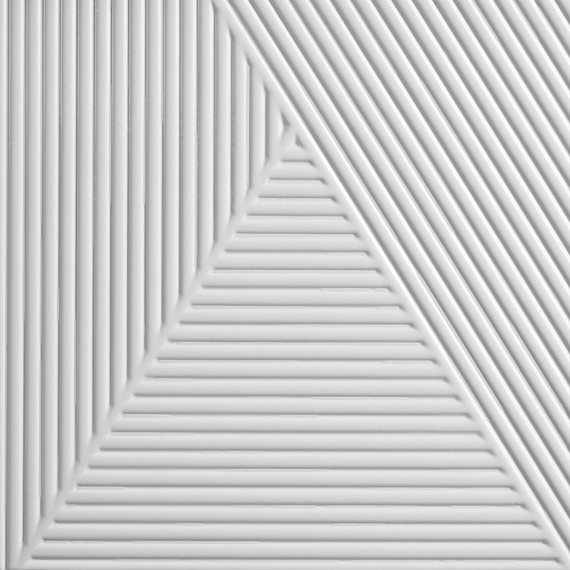 Sleek and sculptural, this six-drawer dresser pairs crisp white high gloss with dimensional detail for a bold modern look. Its geometric drawer fronts feature ribbed textures forming inverted V patterns, highlighted by polished chrome U-shaped pulls. Felt-lined top drawers add a refined interior touch, while smooth-gliding drawers operate on 45mm metal extension glides hardware. Finished with slender legs and clean lines, this dresser brings texture and brightness to contemporary bedrooms.