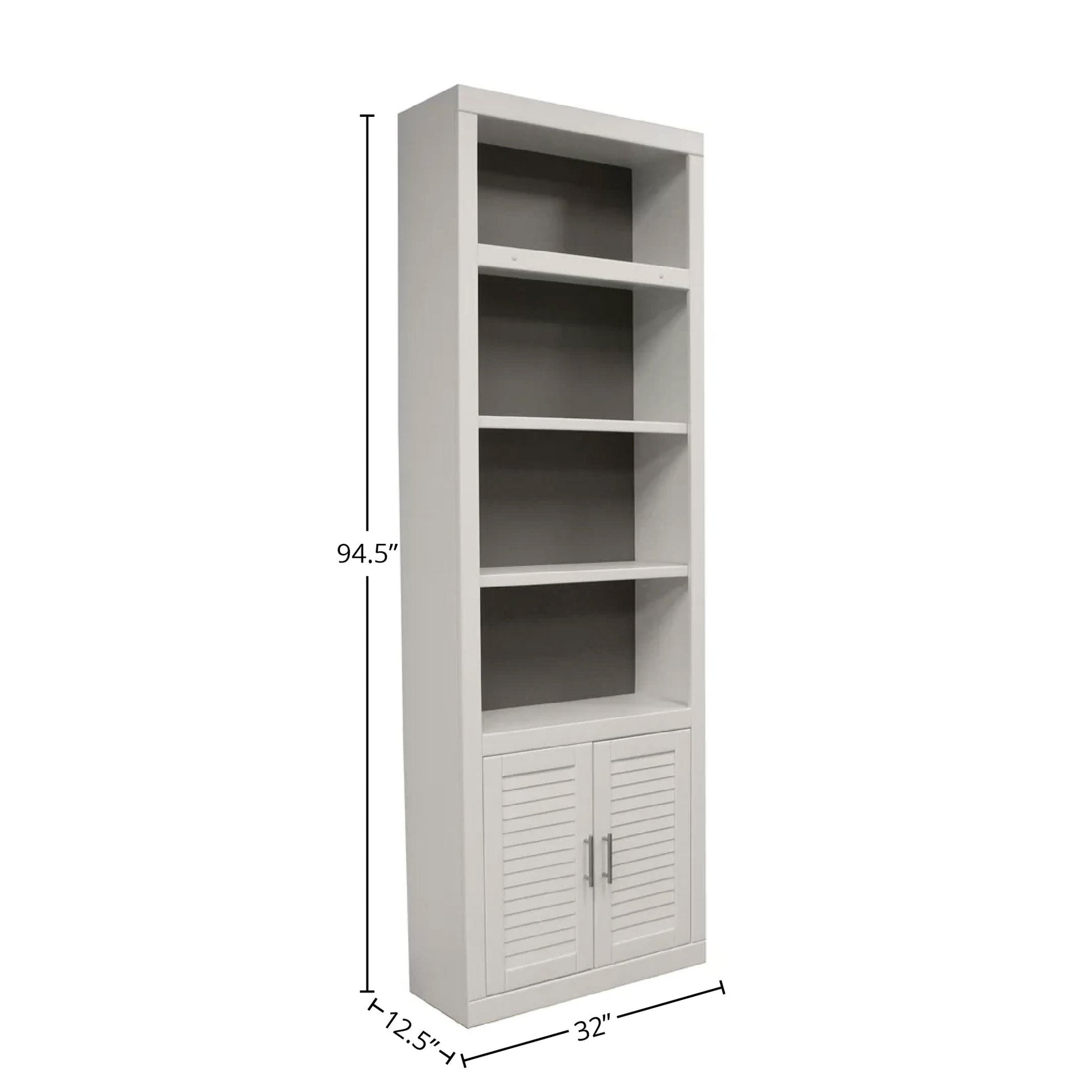 A fresh Cottage White finish and clean styling make this open top bookcase in Cottage White a true essential. Thoughtful designer options render it customizable and let you reverse the back panel from white to grey and its cabinet doors from paneled to louvered to create your own look.