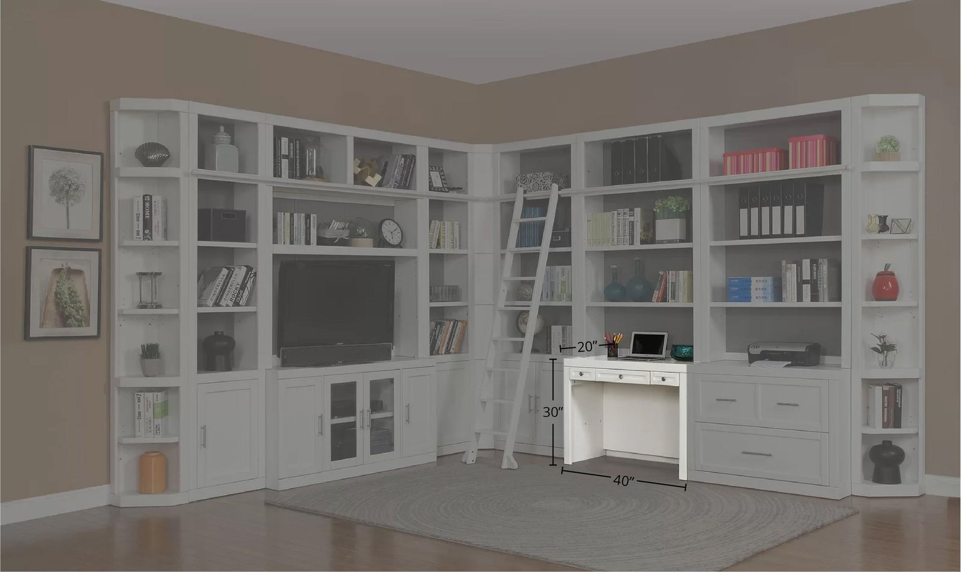 Add a fashionable and functional workspace to your library wall with this library desk. Created in a fresh Cottage White finish, its functional design makes it the perfect place to do work, finish homework or pay bills.