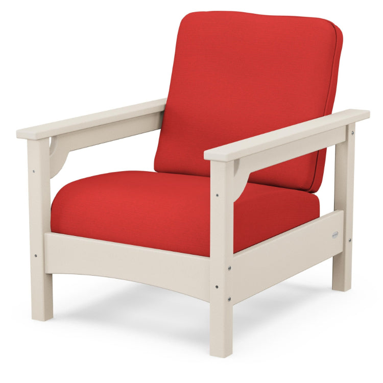 Bring beautiful style and cozy comfort outside with our Club Chair. Designed with clean lines and a gently curved armrests, its a versatile style that suits any porch or patio. With fast-drying cushions and all-weather lumber, minimal maintenance is needed to preserve its good looks.