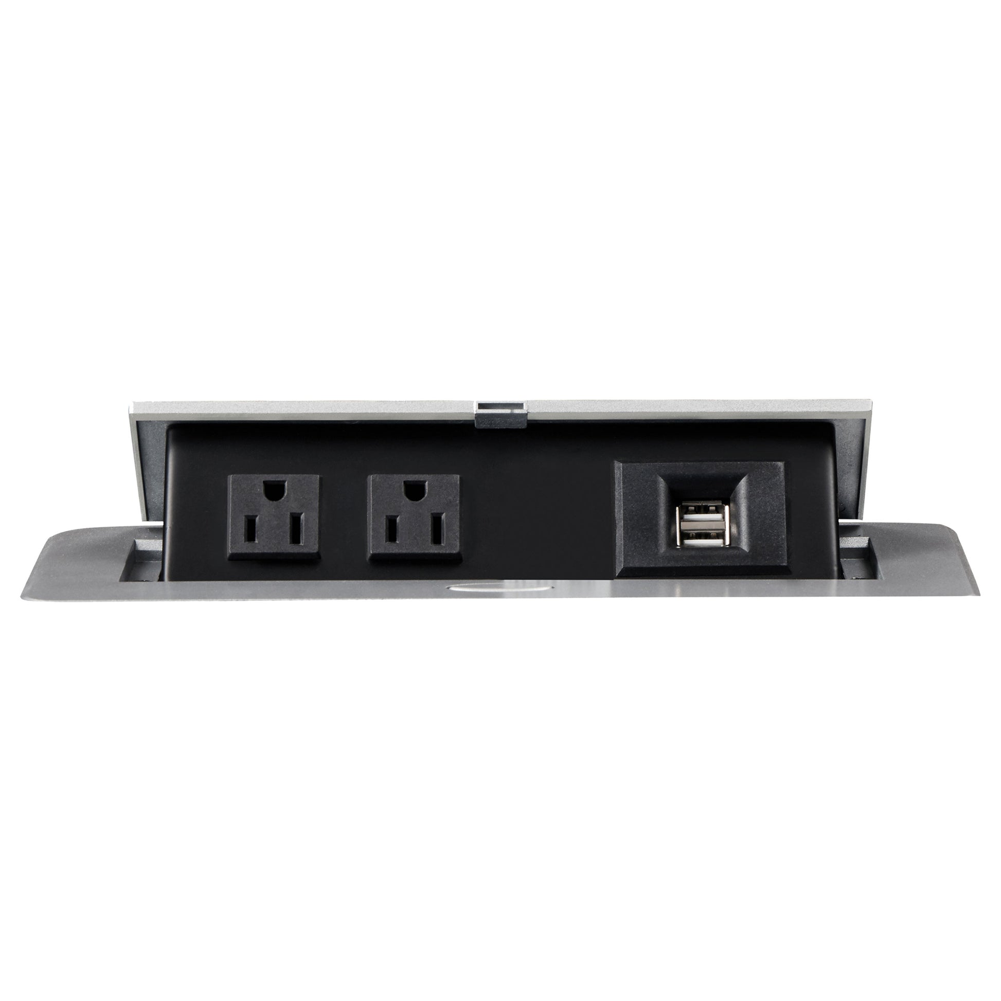 • Pop-up power outlet with dual AC and USB ports enhances utility