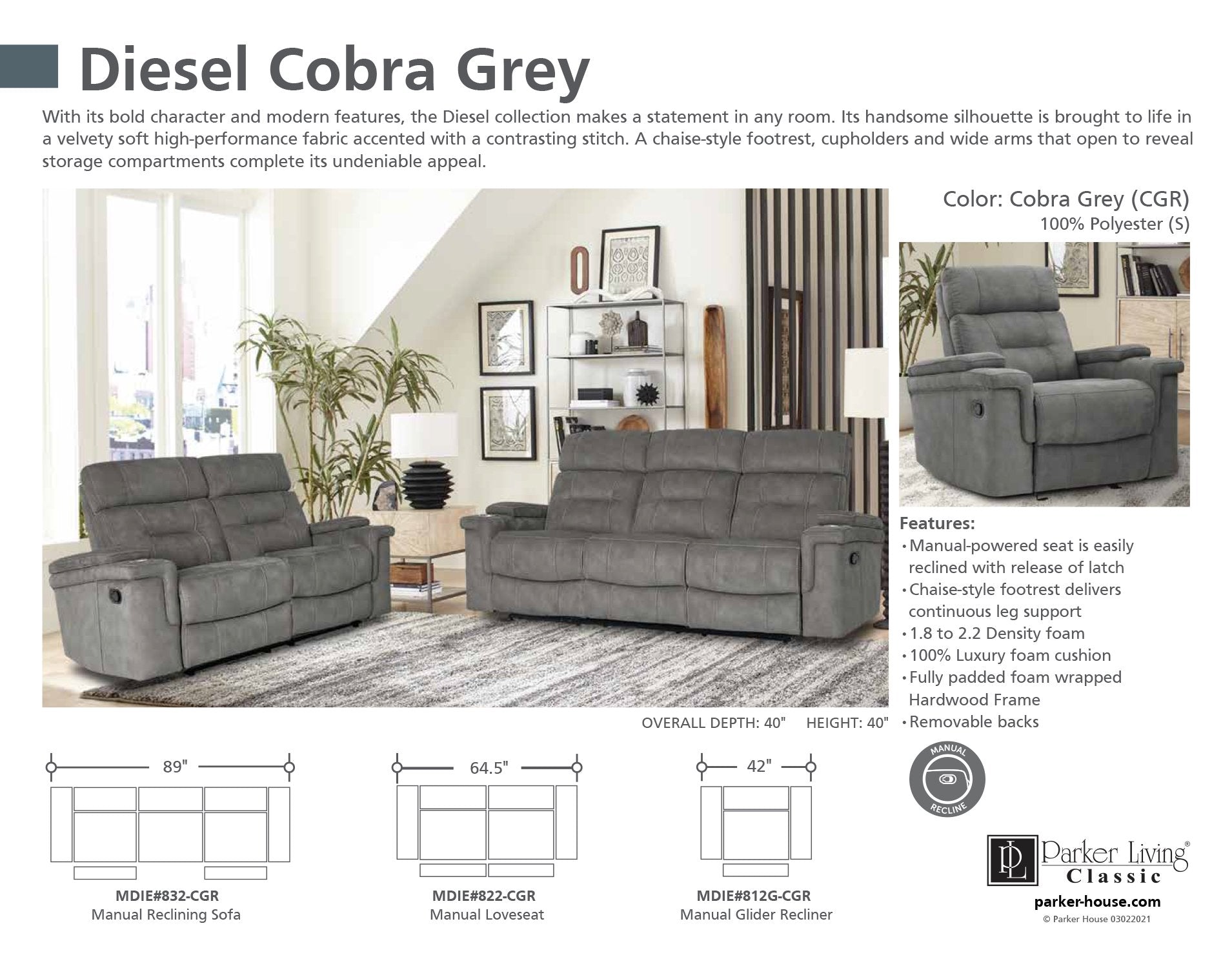 DIESEL MANUAL - COBRA GREY MANUAL SOFA