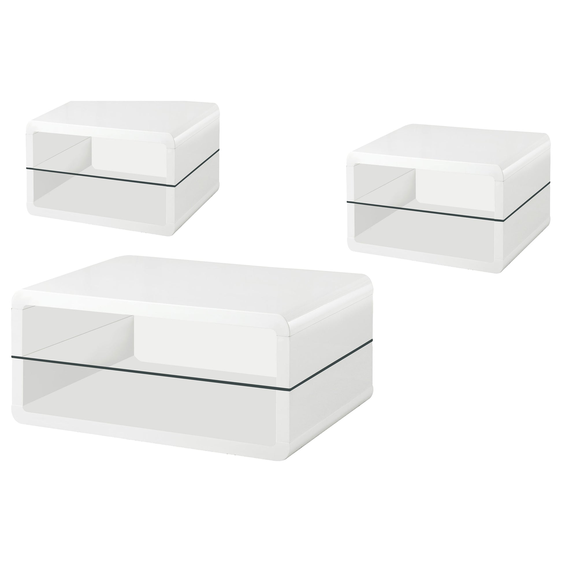 • Coffee table set with a white high-gloss finish for sleek modern appeal