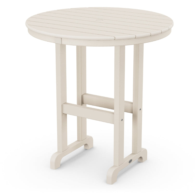 A heightened table will appear to take up less space, making it ideal for smaller outdoor areas and everyday meals. Designed with a round tabletop and attractive trestle base, our 36" Round Farmhouse Counter Table levels up any occasion, from morning coffee dates to after-work libations.