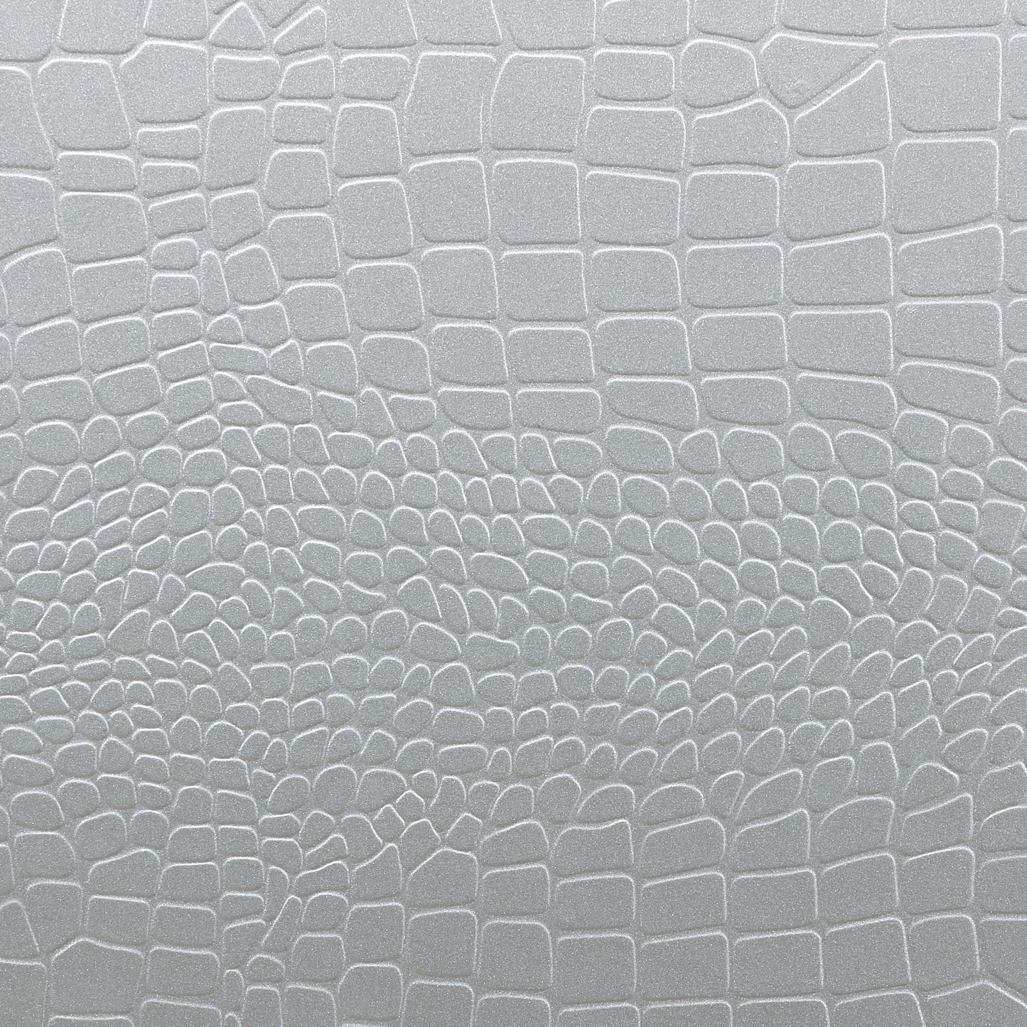 • Silver metallic finish pairs with mirrored trim and crystal hardware throughout