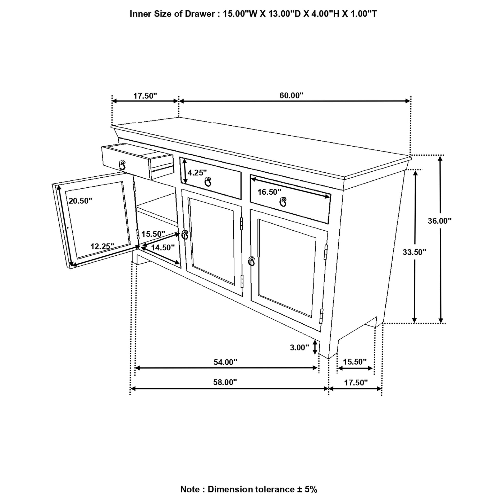 This majestic accent cabinet adds an artistic splendor to the home. It's handcrafted with beautiful reclaimed wood material that stands up to years of use. Acacia and teak wood combine together for a charming mix of dark and light brown colors. Three spacious drawers and three doors with attractive metal pulls open to ample storage space. Each door also has a wooden door latch for added detail that's sure to please.