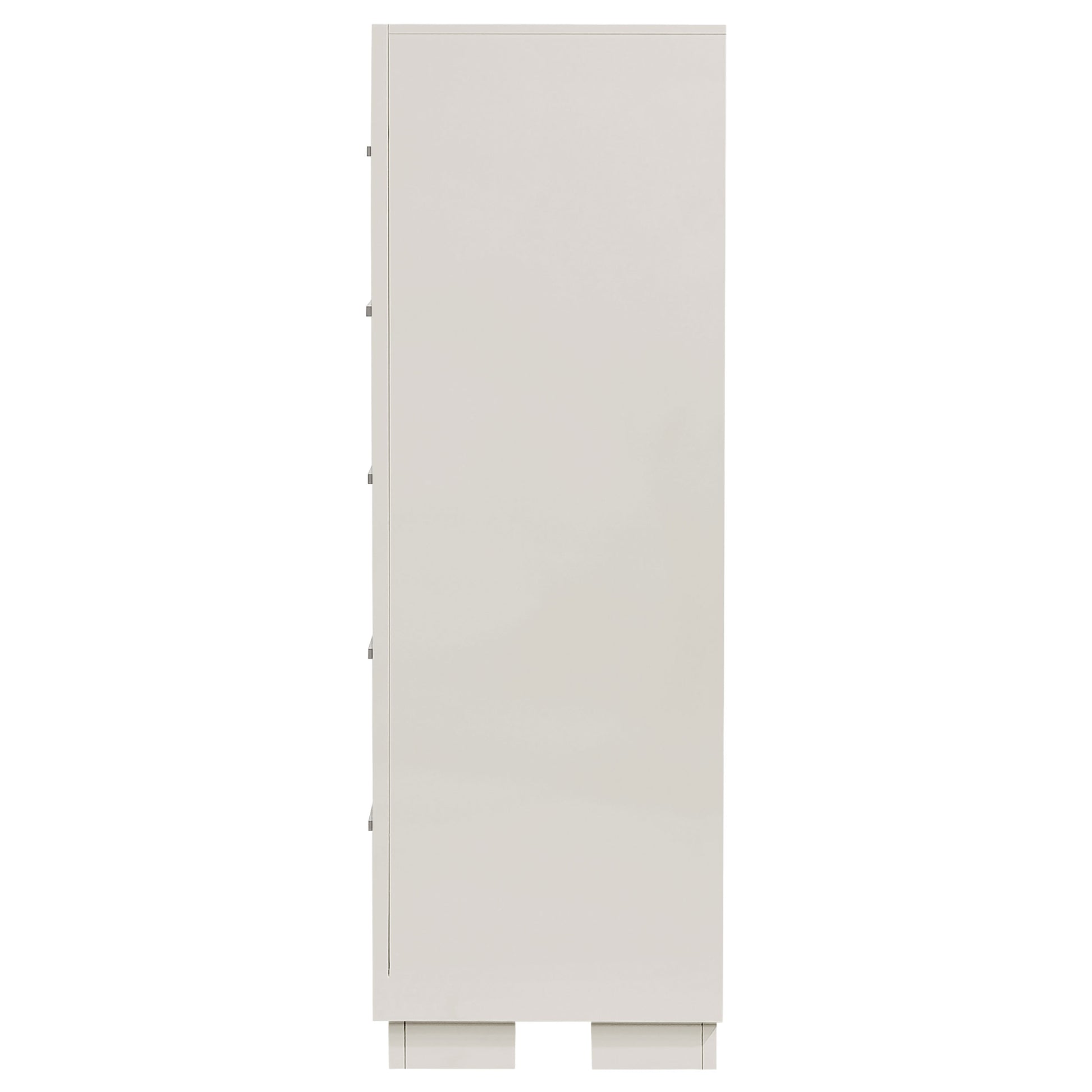 Graceful proportions and contemporary simplicity define this five-drawer chest. Designed for both elegance and function, its spacious drawers glide open to reveal generous storage for garments and essentials. Sleek bar pulls accent the clean lines of its modern silhouette, while a smooth finish enhances the natural warmth of the wood. With refined balance and lasting craftsmanship, this piece elevates the art of everyday organization.