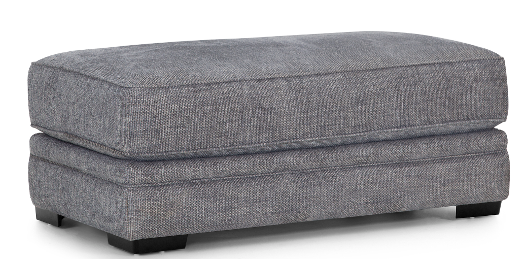 The Juno stationary collection is upholstered in Crosby Denim, a medium gray polyester fabric. The accent pillows are in Lift Black and Protege Slate which is a diamond pattern in shades of gray, blue and cream. The accent pieces include 2183 Chelsea Swivel Accent Chair and 75018 ottoman in Protege Slate