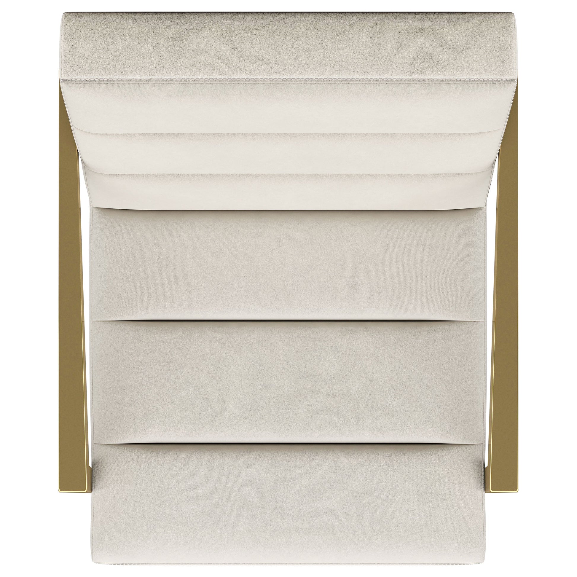 Restrained, modern style meets elegant artistry in a striking contemporary armchair. Designed to stand out, it boasts an upholstered seat and back with a metal frame and arms. The streamlined look receives a gleaming gold finish, adding sophistication anywhere from a sophisticated living room to a refined reception area in a professional space. Sloping, tapered arms define its silhouette, creating an accent chair that's sure to stand out. Channel tufting accents foam cushions, creating a sense of depth and dimension you'll appreciate in any setting.