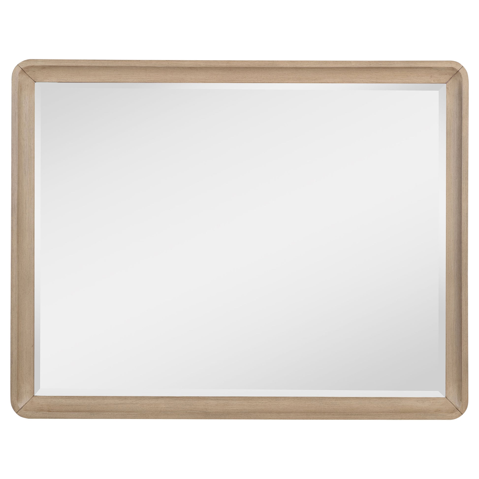 This rectangular dresser mirror adds modern sophistication to your space with its clean lines and light elm wood frame. Rounded edges soften its contemporary design, making it a versatile addition to any room. Built with sturdy materials, this mirror is as durable as it is stylish and pairs perfectly with the matching dresser for a cohesive look.
