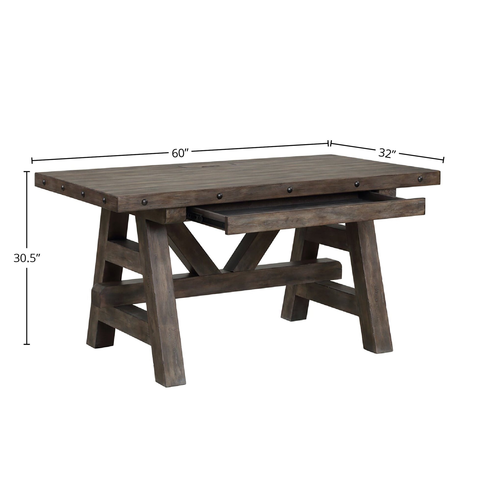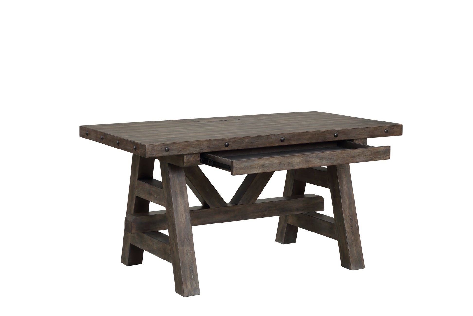 Enjoy a workspace that's both smart and stylish with this Writing Desk from the Lodge collection. Whether you're working from home or organizing household projects, you're sure to appreciate its Power Center with dual AC outlet and dual USB port. A hand-applied, multi-step finish in Siltstone captures the beauty of the great outdoors in shades of slate, charcoal and sand and accentuates its bold profile while iron-inspired accents adding a decorator touch.