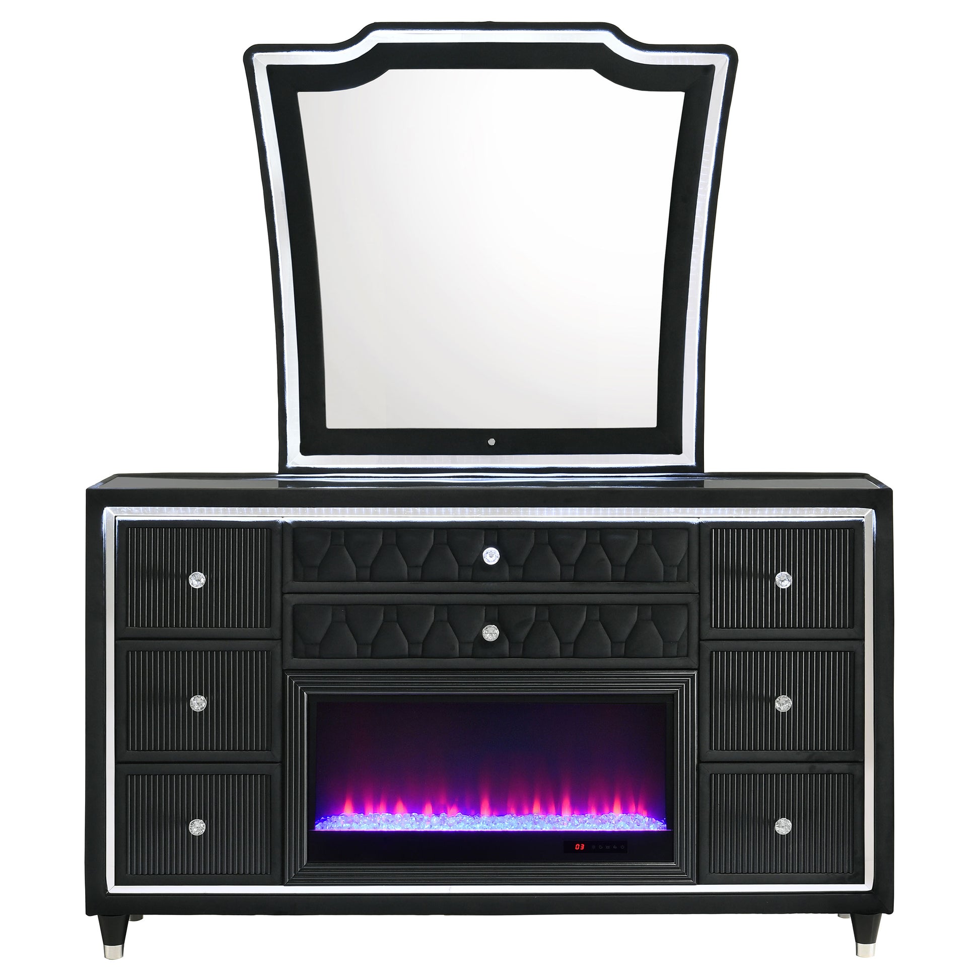 Lorient 8-drawer LED Flame Box Dresser and Mirror Black