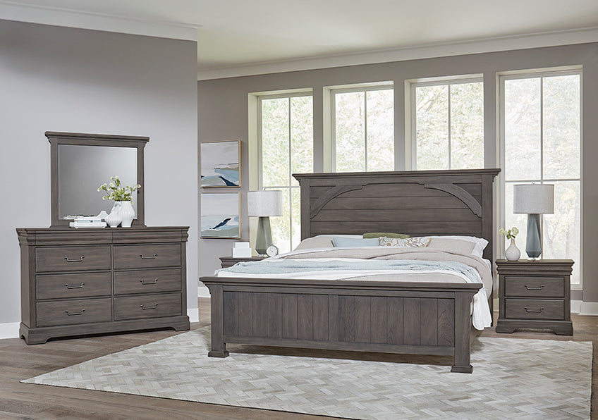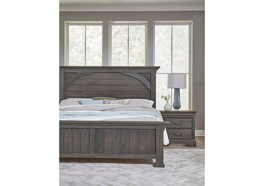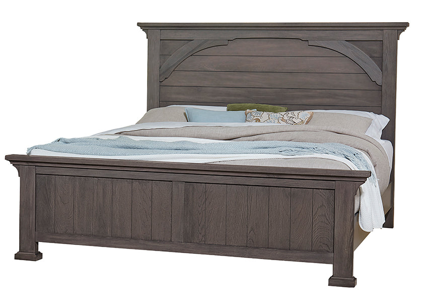 Mansion bed offers a more relaxed rustic feel featuring corbel overlays and curved top cap rail