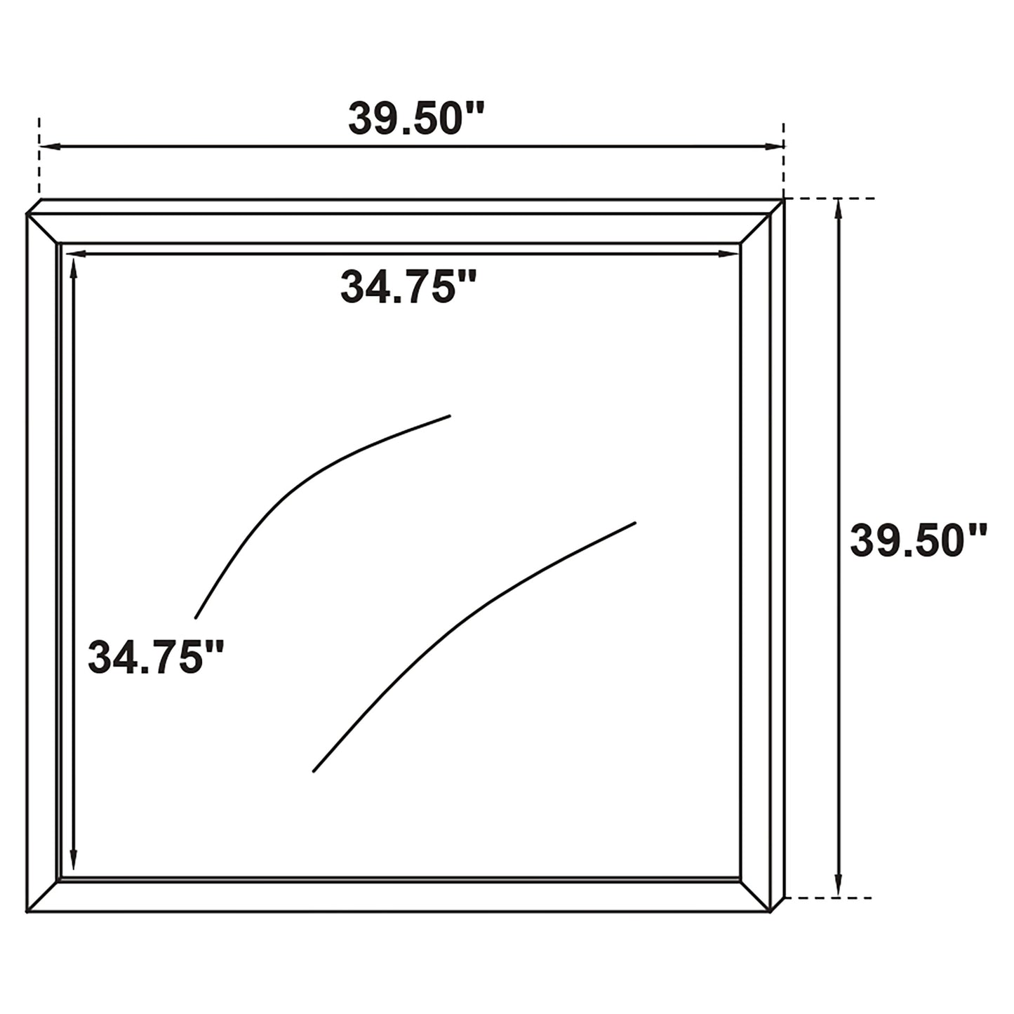 • Roomy drawers with vertical gold pulls and dresser topped with framed mirror