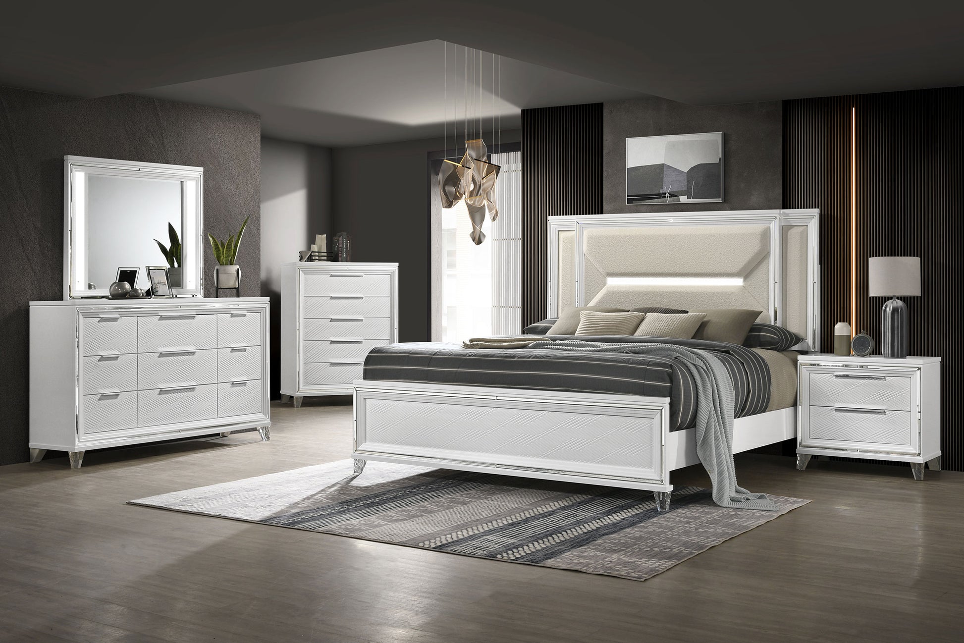 Marmore 64-inch Queen Panel Bed LED Headboard White