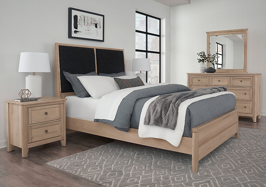 2 drawer Nightstand with solid Beveled edge top with framed drawer fronts adorned with distinctive graphite drawer pulls