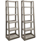 A fashion-forward addition to any space, this pair of Angled Etageres from the Pure Modern collection is sure to be a topic of conversation. Their architecturally inspired silhouette features a tapered design that creates visual interest in a space. Crafted of straight-grain white oak, these modern storage pieces wears a soft Moonstone finish that highlights the linear veneers and angular proportions. Four open wood shelves create a uniqueting for storing and displaying favorite artwork and accessories.