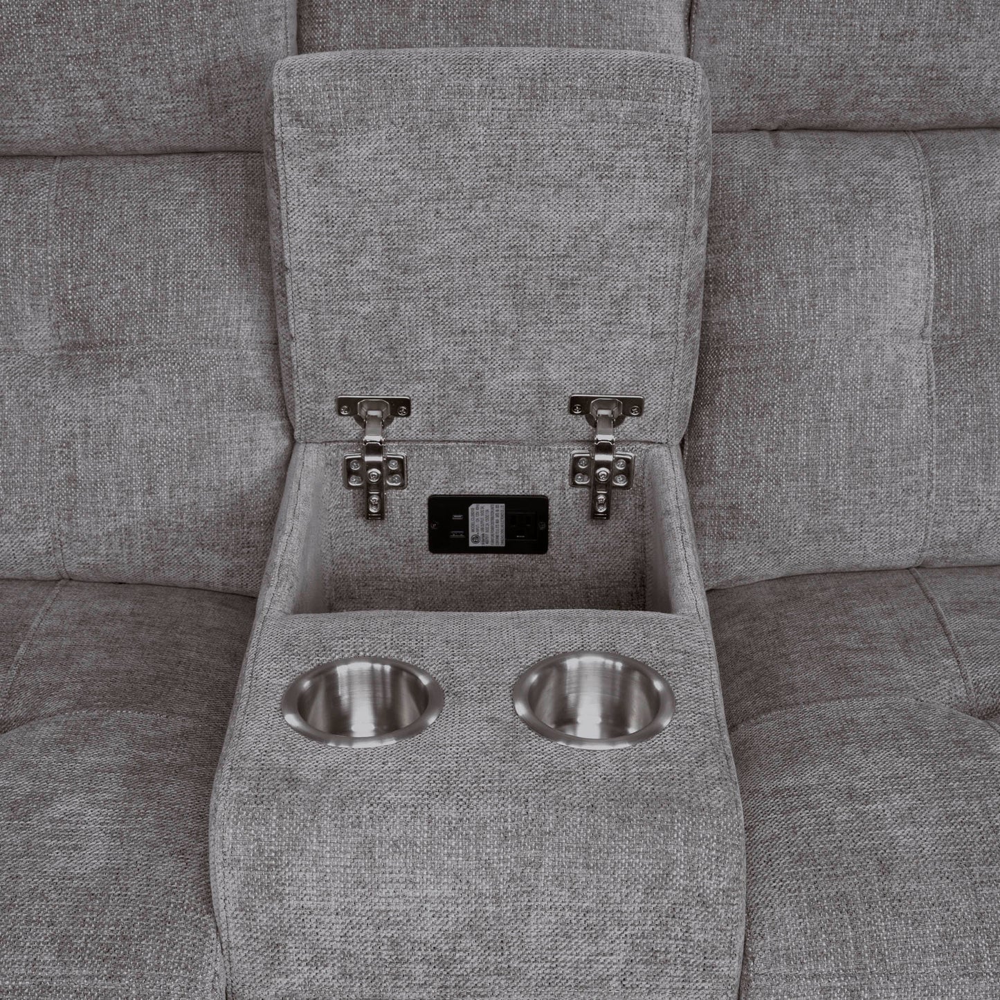 RICHLAND - BRISTOL GREY POWER CONSOLE LOVESEAT WITH POWER HEADRESTS