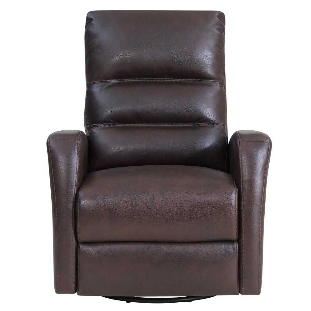 It's hard to stay awake when you're in the comfy embrace of the Ringo power swivel, glider recliner. A buttery soft, top grain leather in Florence Brown highlights its sophisticated silhouette and tailored appeal.