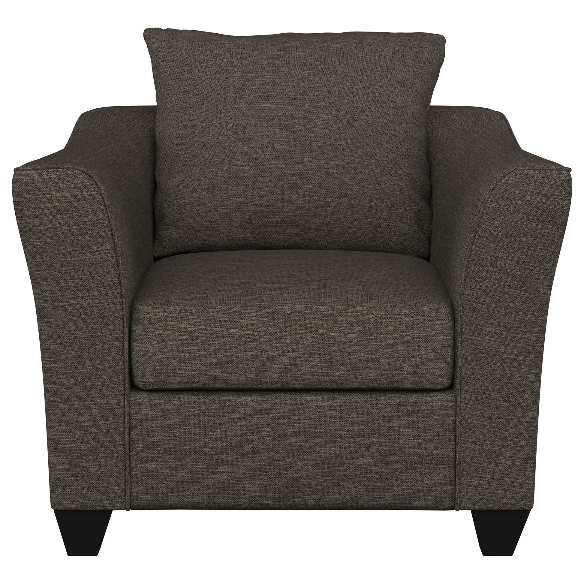Designed for versatility and comfort, this accent chair embodies contemporary simplicity with flared arms and tailored upholstery. Plush cushions with resilient foam fill invite relaxation, while its sculpted silhouette pairs beautifully with a sofa or loveseat. Whether completing a coordinated ensemble or standing alone as a reading chair, its refined form and durable construction make it a lasting favorite for everyday use.