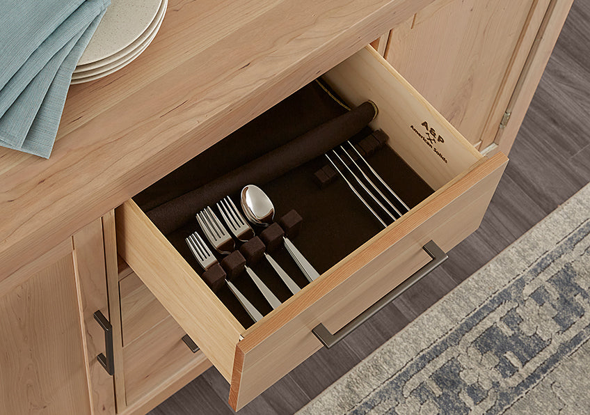 Add versatile and stylish storage to your dining room with 60 inch server. Three drawers offer up plenty of space, top drawer includes a silverware tray. The solid cherry construction of this piece allows you to rest easy knowing that this server will last for years to come.