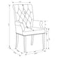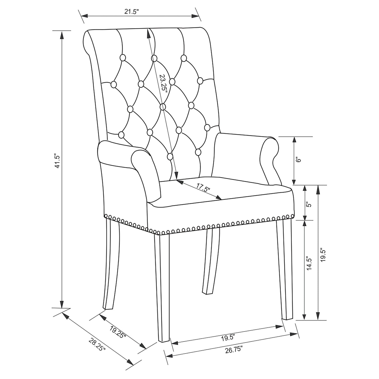 • Plushily padded side chairs are adorned with rolled backs and button-tufted upholstery with bold nailhead trim