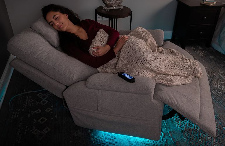 - Motion-activated LED base lighting turns on when you approach or get out of the recliner, and can be adjusted in brightness and color in the MyRecline app