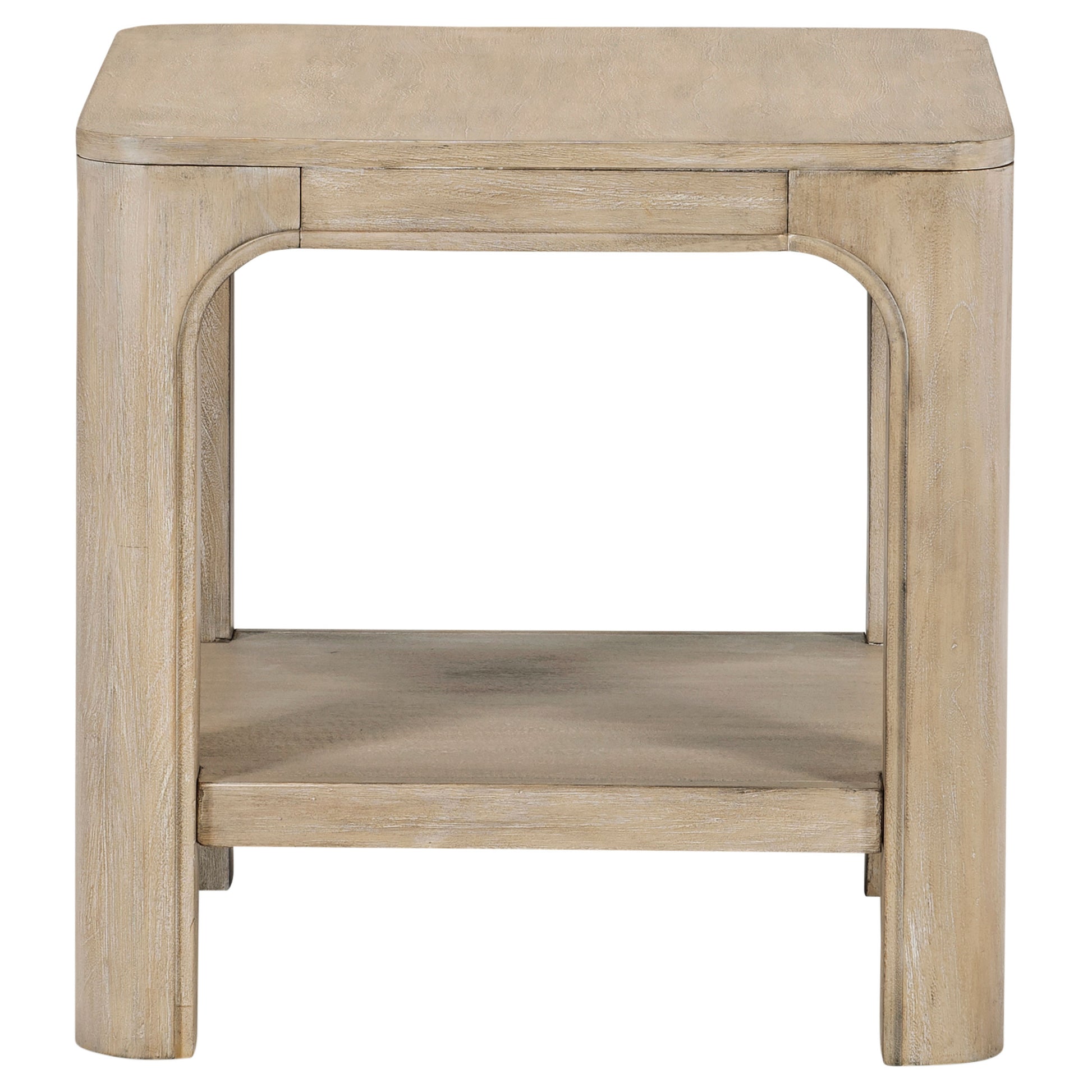 • Square end table with shelf and sculpted legs for an elegant living room accent
