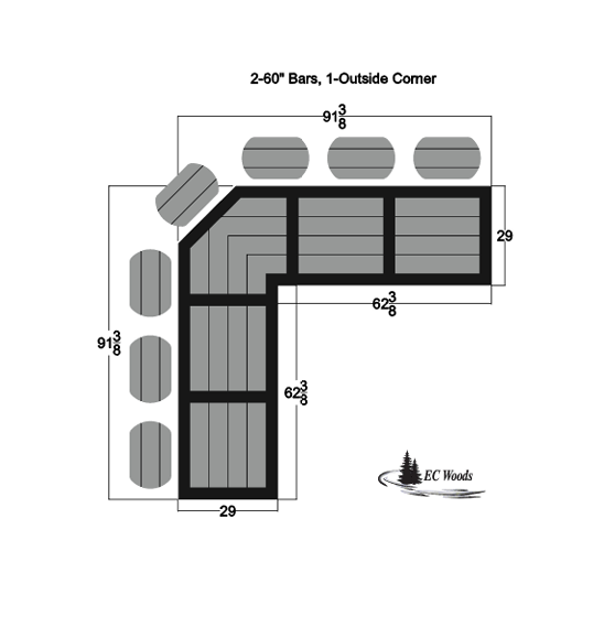 - 20" bar, 34" bar, 48" bar, 60" bar, 90° or 45° outside corner (see bar layout planner for top down view of modules)