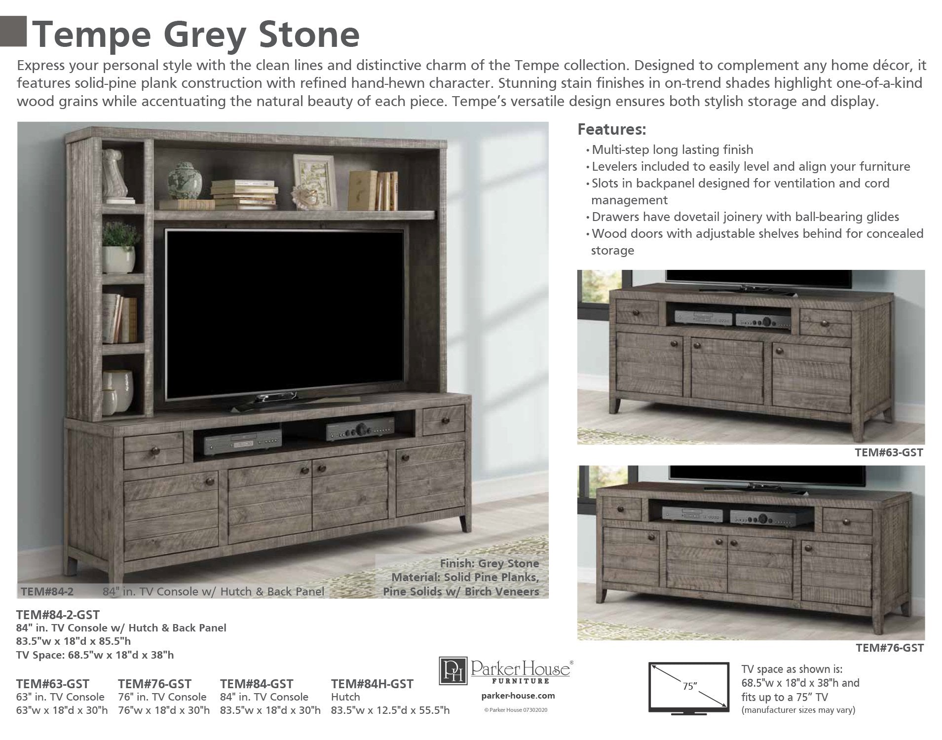 Create the ultimateting for your TV with the undeniable allure of the Tempe 63-inch TV console in Grey Stone. With generous storage, modern functionality and cord management, it's a decorating dream come true.