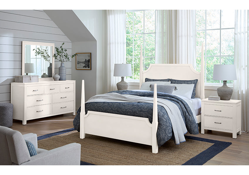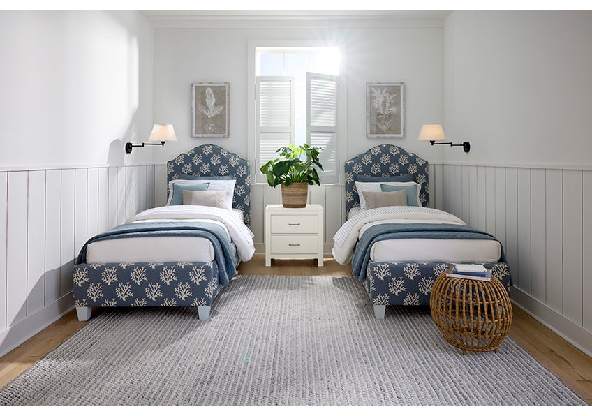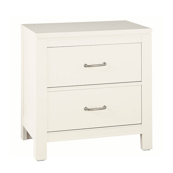 2 drawer nightstand features a modern reveal beneath the top and classic beaded rails; blending contemporary and traditional design